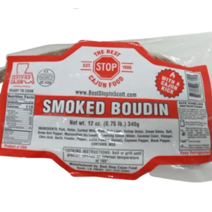 The Best Stop award winning Boudin is put into a smoke house to give it a savory smoke flavor. Smoked Boudin can be cooked in an oven, on a grill, barbecue pit or boiled in water.