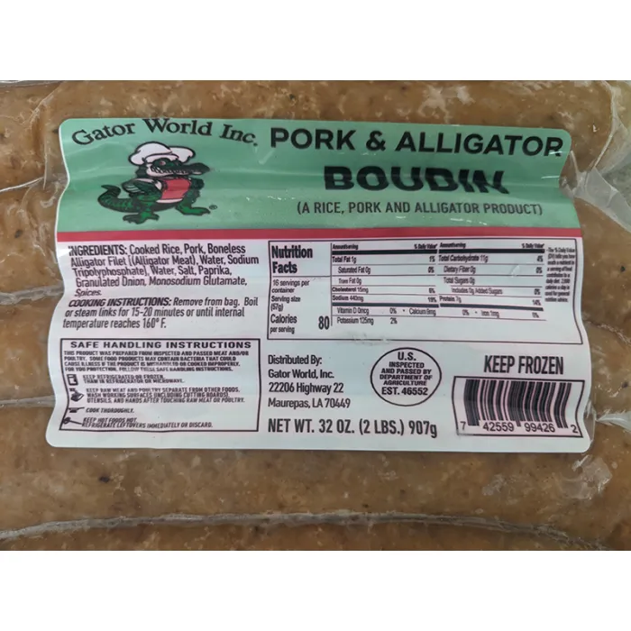 Tags: Gator World Alligator Boudin 2 lb, 742559994262, Alligator