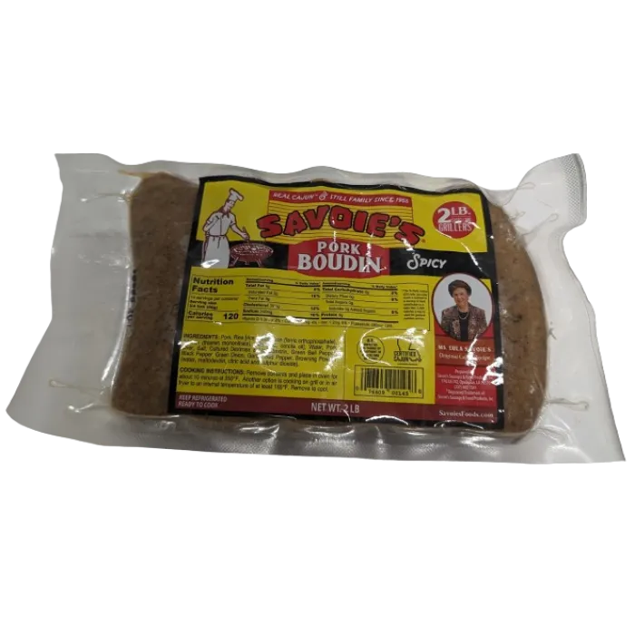Experience the bold and fiery side of Louisiana's cuisine with Savoie's Spicy Pork Boudin Party Links. Weighing in at 2 pounds and comprising 10 robust links, this spicy variant adds an exciting kick to the traditional boudin, making it a perfect choice for those who love a bit of heat in their meals.