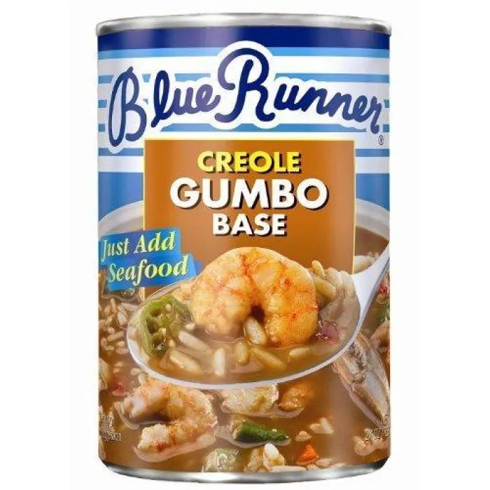 Just add Seafood & Rice for a complete meatl! Directions: Shake can before opening. In a stockpot, heat Blue Runner Creole Gumbo Base to a boil. Reduce heat, add seafood, and continue to simmer for 3-5 minutes until seafood is cooked. Serve over steamed rice