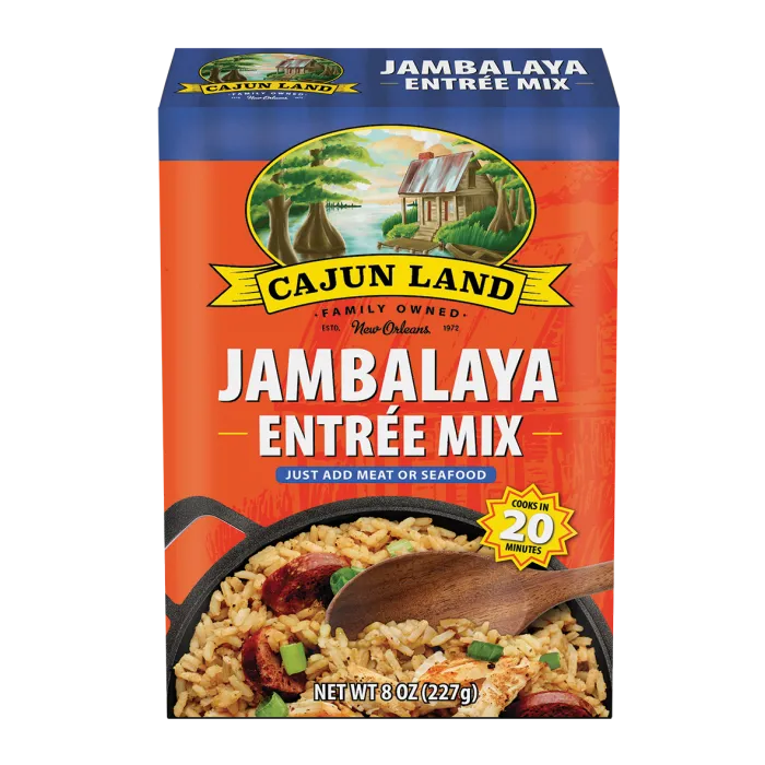 The Jambalaya we enjoy today in South Louisiana is the result of many cultural and culinary influences over the last two centuries. Our Cajun Land Jambalaya Entrée Mix honors the traditions of the past by providing you with an easy-to-prepare and great-tasting blend of rice and genuine Cajun ingredients you can enjoy tonight in less than 30 minutes