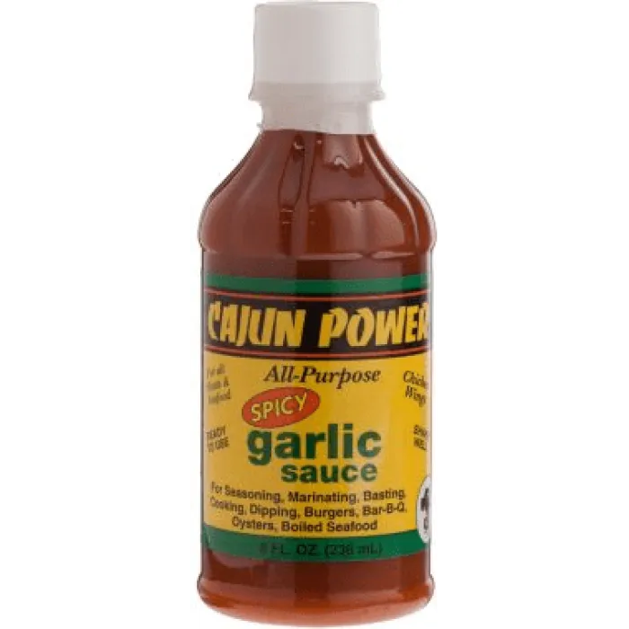 Cajun Power Spicy Garlic Sauce A seafood lover's dream sauce for fried fish, shrimp and oysters. Mix with ketchup and a little horse-radish for a wonderful cocktail sauce. Makes perfect chicken wings.