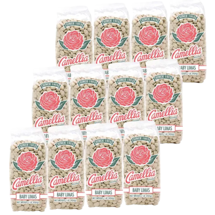Camellia brand beans and peas have been around for over 75 years, they're a true New Orleans institution. Camellia beans and peas are naturally grown. They are of the highest quality, premium beans on the market today. 1 full case of Camellia Baby Lima Beans (1 pound packs).