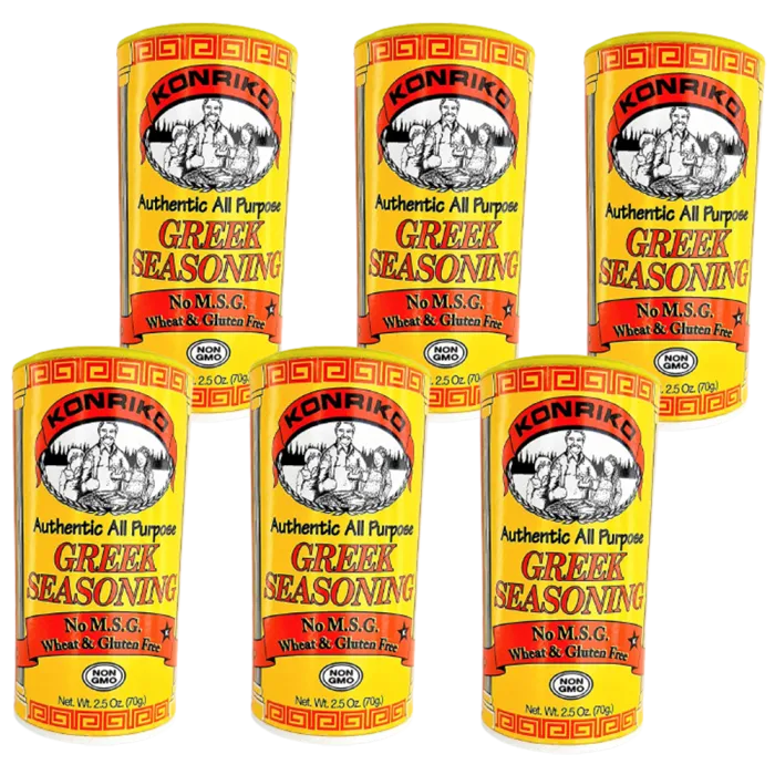 KONRIKO Greek Seasoning contains no M.S.G., sugar or artificial ingredients; FAT FREE. This seasoning has been masterfully blended to enhance the flavor of all meats, poultry and fish. Especially good in soups, stews, casseroles, vegetables, salads and popcorn or eggs.