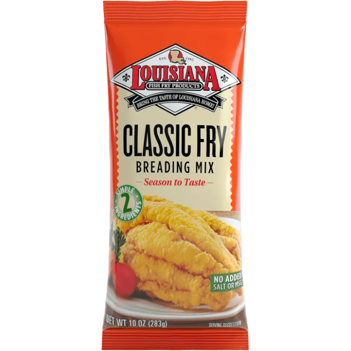 Louisiana Fish Fry Classic (All Natural, Unseasoned) is a blend of corn flour and corn meal used as a dry fry mix for your favorite fish, oysters, shrimp, meat or vegetables. Try other fine LOUISIANA FISH FRY® products to complete your meal: LOUISIANA Cocktail Sauce, or LOUISIANA Cajun Seafood Sauce.