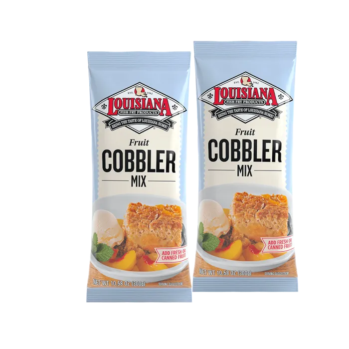 Louisiana Fish Fry Cobbler Mix is the perfect blend of ingredients to create your favorite cobbler. Add peaches, apples, blueberries or any other fruit combination.