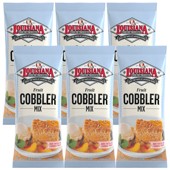Louisiana Fish Fry Cobbler Mix is the perfect blend of ingredients to create your favorite cobbler. Add peaches, apples, blueberries or any other fruit combination.