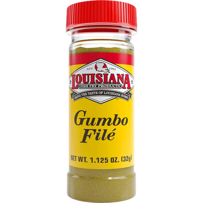 Louisiana Fish Fry Gumbo File is produced from dried and ground sassafras leaves, filé is traditionally used in gumbos and soups to provide thickness and a complimentary accent of flavor. Made from the dried leaves of the sassafras tree, Louisiana Fish Fry Gumbo File is the essential seasoning for gumbo. Shake a little bit of Louisiana Fish Fry's Gumbo file on top of gumbo or soups just before serving as a delicate seasoning and thickener.