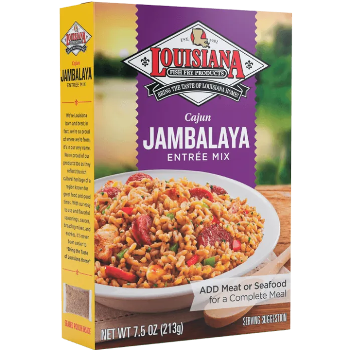 - Combine meat and/or seafood and LA Fish Fry Cajun Jambalaya Entrée Mix with 2 ¼ cups of water. Stir well.