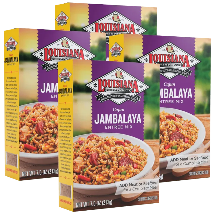 - Combine meat and/or seafood and LA Fish Fry Cajun Jambalaya Entrée Mix with 2 ¼ cups of water. Stir well.