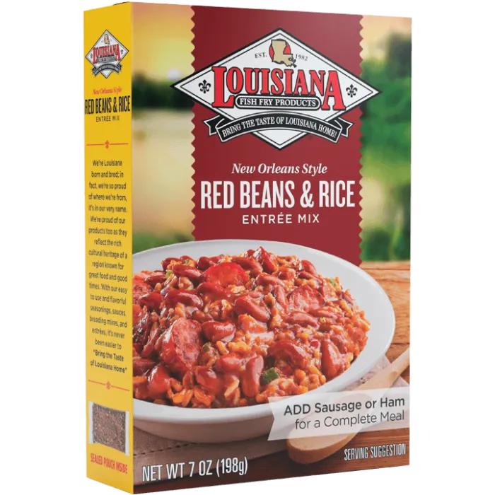 Enjoy Louisiana’s Official Cuisine. Louisiana Fish Fry Red Beans & Rice comes with everything you need to enjoy this classic. Just add your choice of Louisiana sausage and Enjoy.
