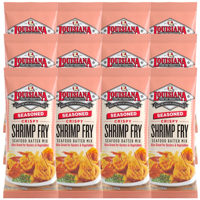 Louisiana Shrimp Fry (Seasoned) is a blend of wheat flour, corn flour, salt and other spices used as a dry fry mix for shrimp, fish, oysters, meat or vegetables. Try other fine Louisiana Fish Fry® products to complete your meal: Louisiana Cocktail Sauce, or Louisiana Cajun Seafood Sauce.