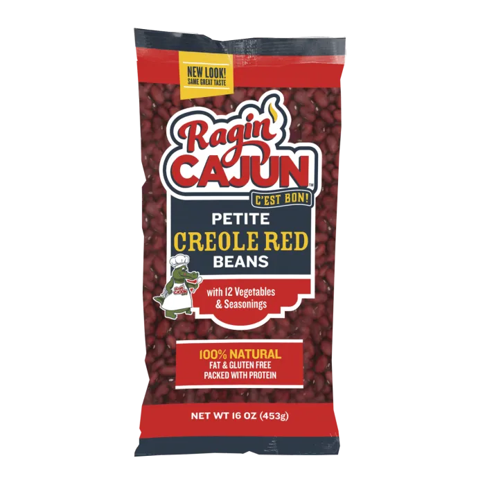 C'est petite! Ragin' Cajun Petite Red Beans are a bit smaller than our best-selling Cajun Style Red Beans, but the taste is just as big! These selected beans contain our secret blend of spices, vegetables, and herbs. Consisting of 12 different seasonings. Fat Free, All Natural, Reduced Sodium, Gluten Free. Hand-crafted in Broussard, Louisiana.