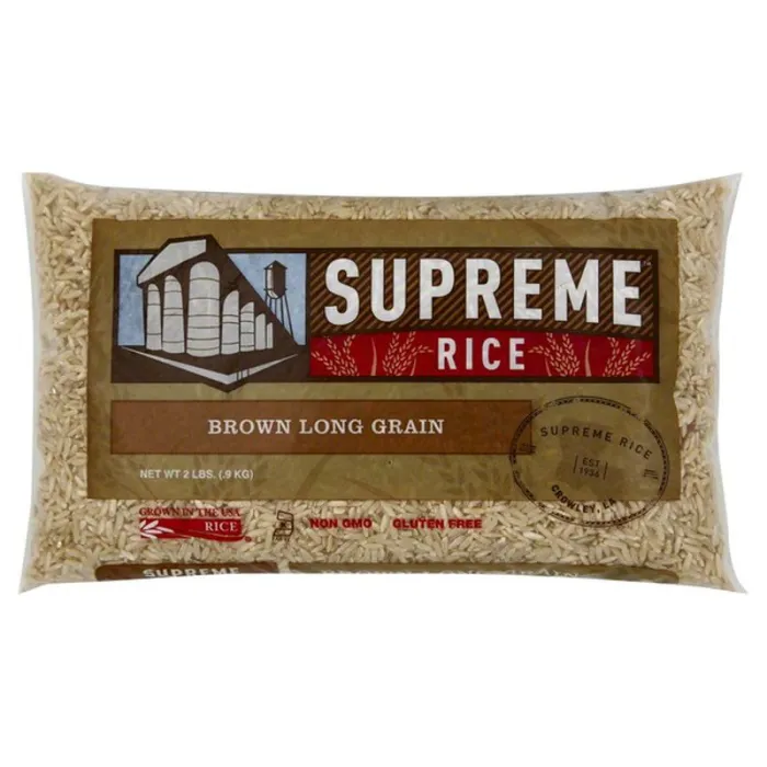 Supreme’s Brown Long Grain Rice, 4 times longer than they are wide, is a kind of whole, natural grain, beige and opaque and more intense than our white rice. The light brown color is caused by the presence of bran layers which are rich in minerals and vitamins, especially the B-complex group. Cooked brown rice has a slightly chewy texture and nut like flavor. This type of rice is great for stuffing, pilafs, salads, casseroles, stir-fry dishes and so much more.