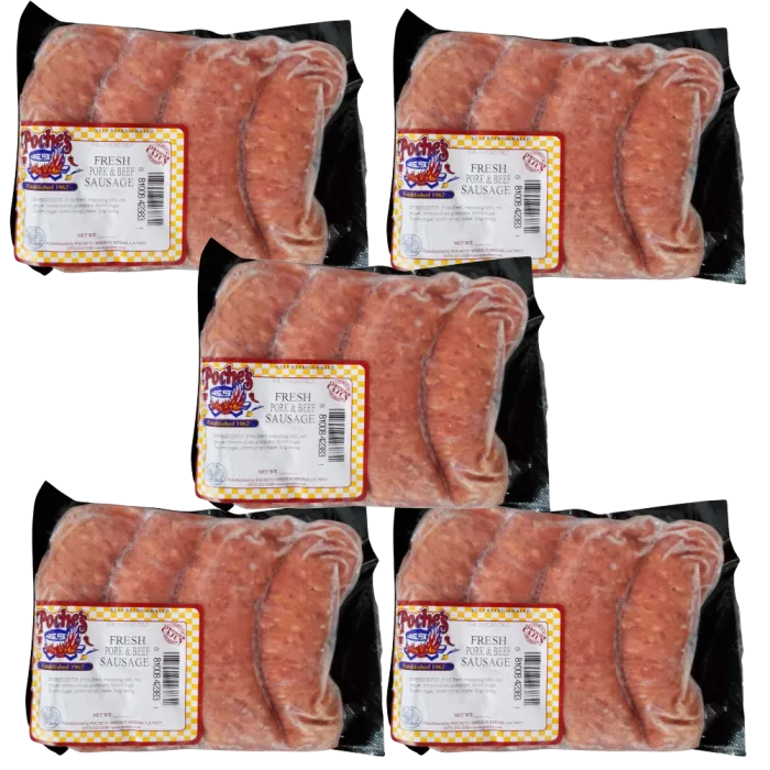 Poche's Fresh Beef & Pork Sausage 1 LB Pack of 5