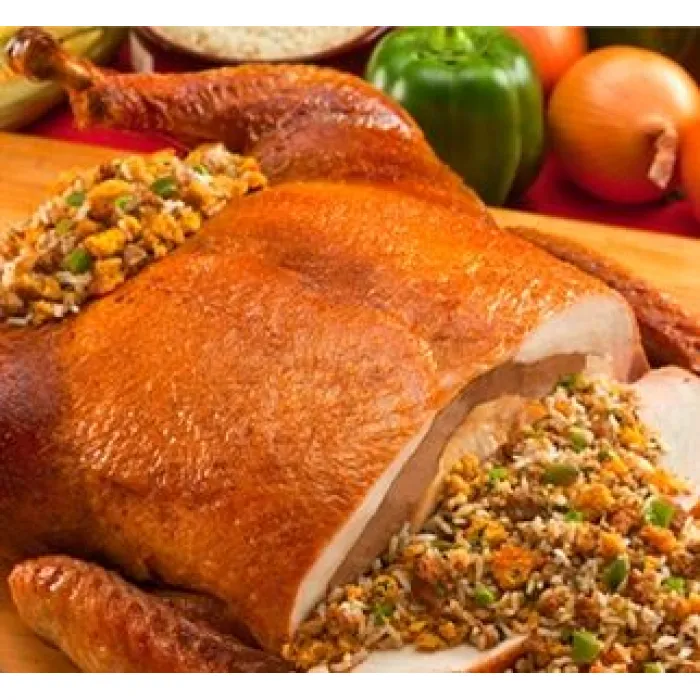 Turducken stuffed with cornbread ALLERGEN INFORMATION: Contains wheat, milk and soy.